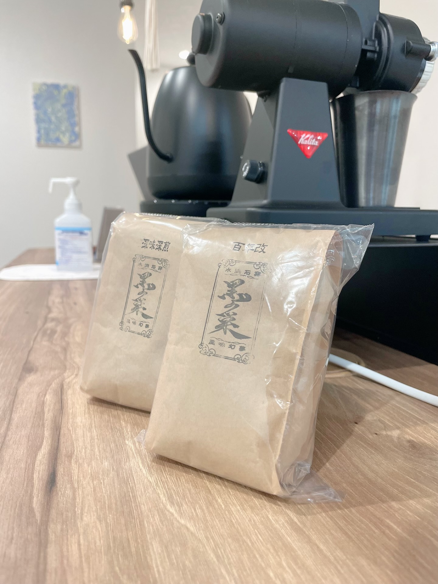 まずコーヒー豆を挽いていきます!今回使うのは、黒の巣さんのコーヒー豆です!
