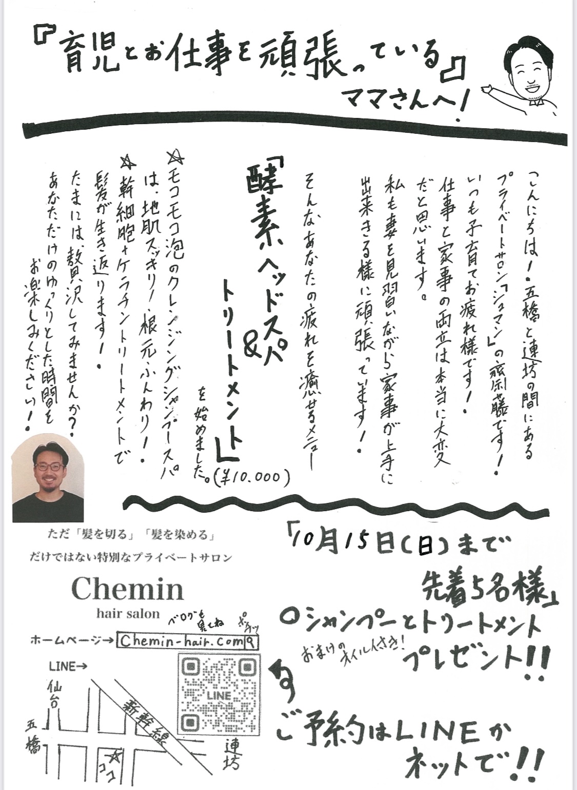 仙台市・五橋の美容室 hair salon Chemin(シュマン)