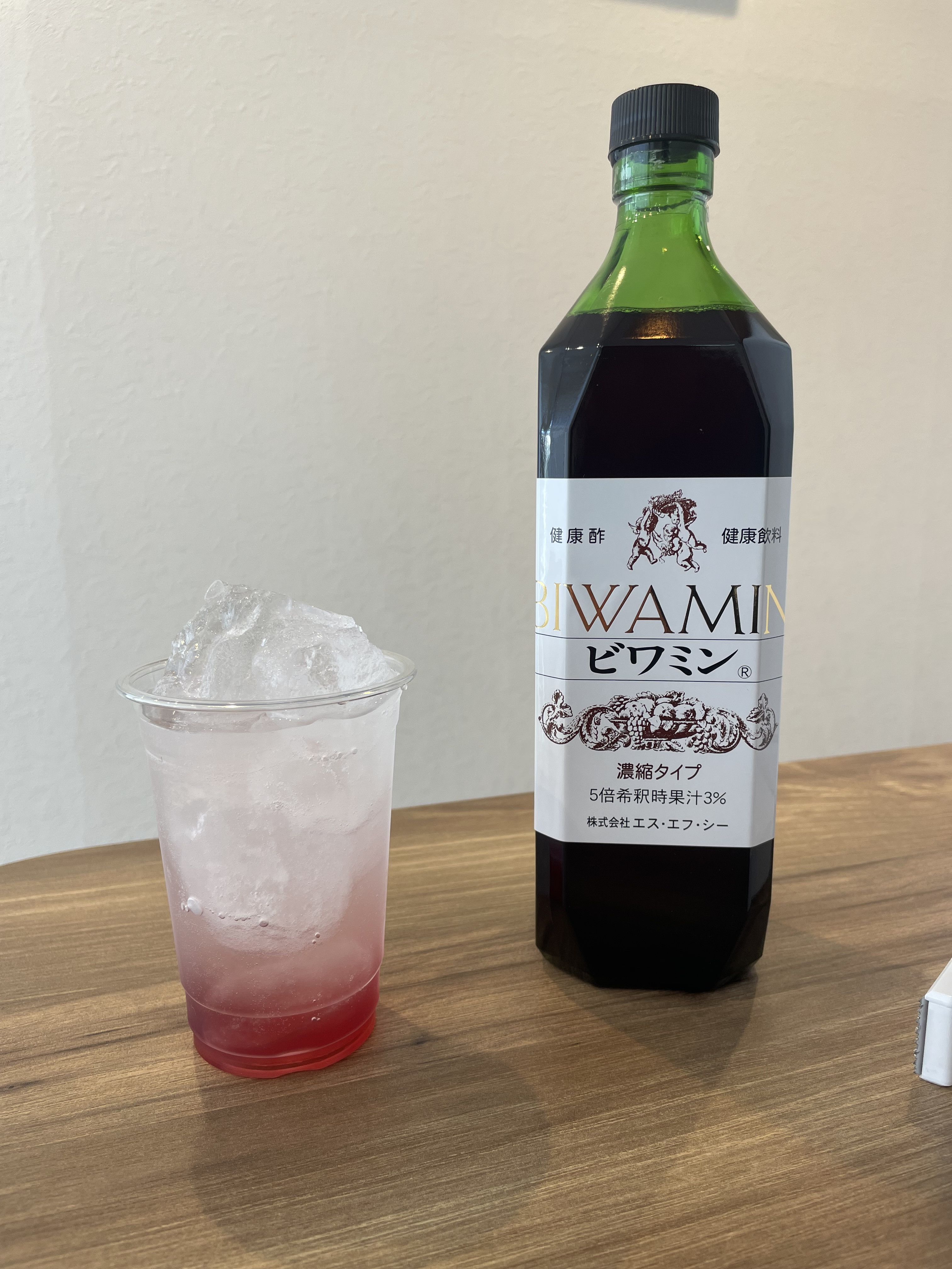 ぶどうとお米のお酢をベースにビタミン、ロイヤルゼリー、カルシウム、ビワの葉エキスをバランスよく配合した。健康酢です!